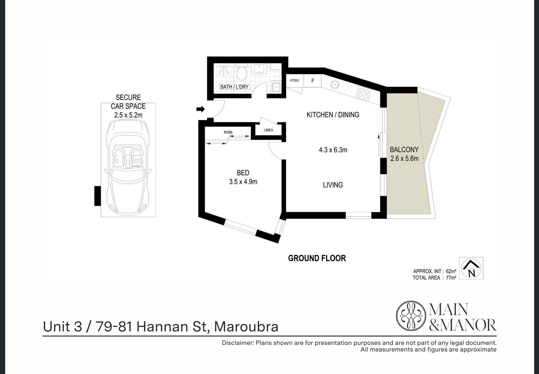 Set quietly at the rear of one of Maroubra’s youngest boutique security buildings, this north-east facing full brick apartment offers a beautiful sense of space, light and privacy. Enjoy a sun-drenched balcony with a leafy outlook, quality finishes throughout, and the ease of Pacific Square and express CBD buses just moments away. It is an effortless lifestyle address, perfectly positioned for everyday comfort and convenience. - Generous bedroom with large built-in wardrobe - Light-filled open plan living and dining area - Sun-drenched balcony with leafy outlook - Modern kitchen with Smeg appliances and CaesarStone benchtops - Combined bathroom and internal laundry, gas hot water - Ducted air conditioning - Secure car space with internal lift access - Full building security with CCTV, video intercom and alarm - Tightly held complex with tranquil residents’ garden - Footsteps to supermarkets, eateries, fitness centres and Pacific Square Disclaimer: Main & Manor Property Groups has no reason to doubt the accuracy of the property information provided. We request that at all times you inspect the property and make & rely upon your own enquiries.